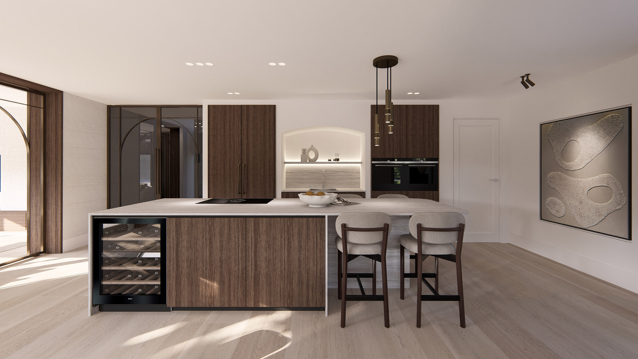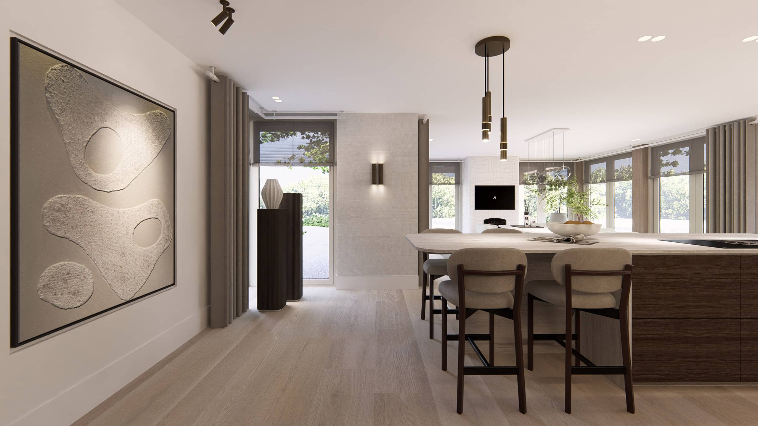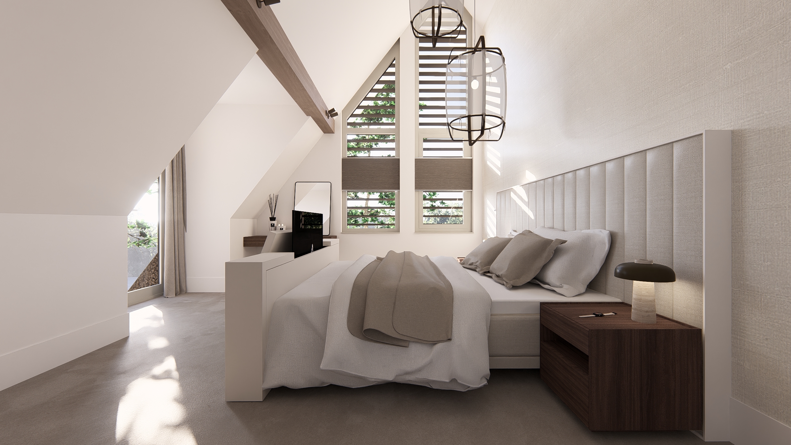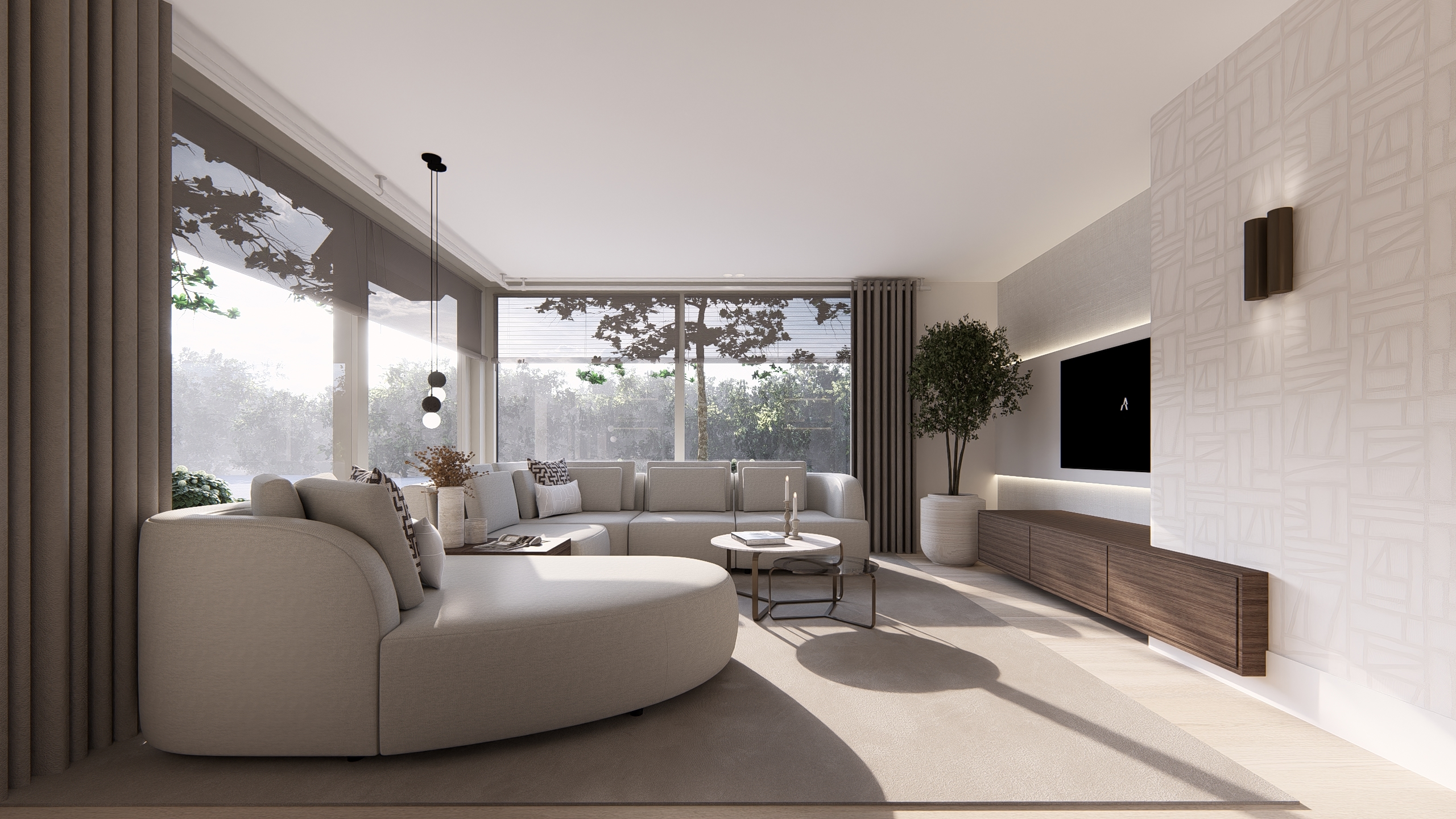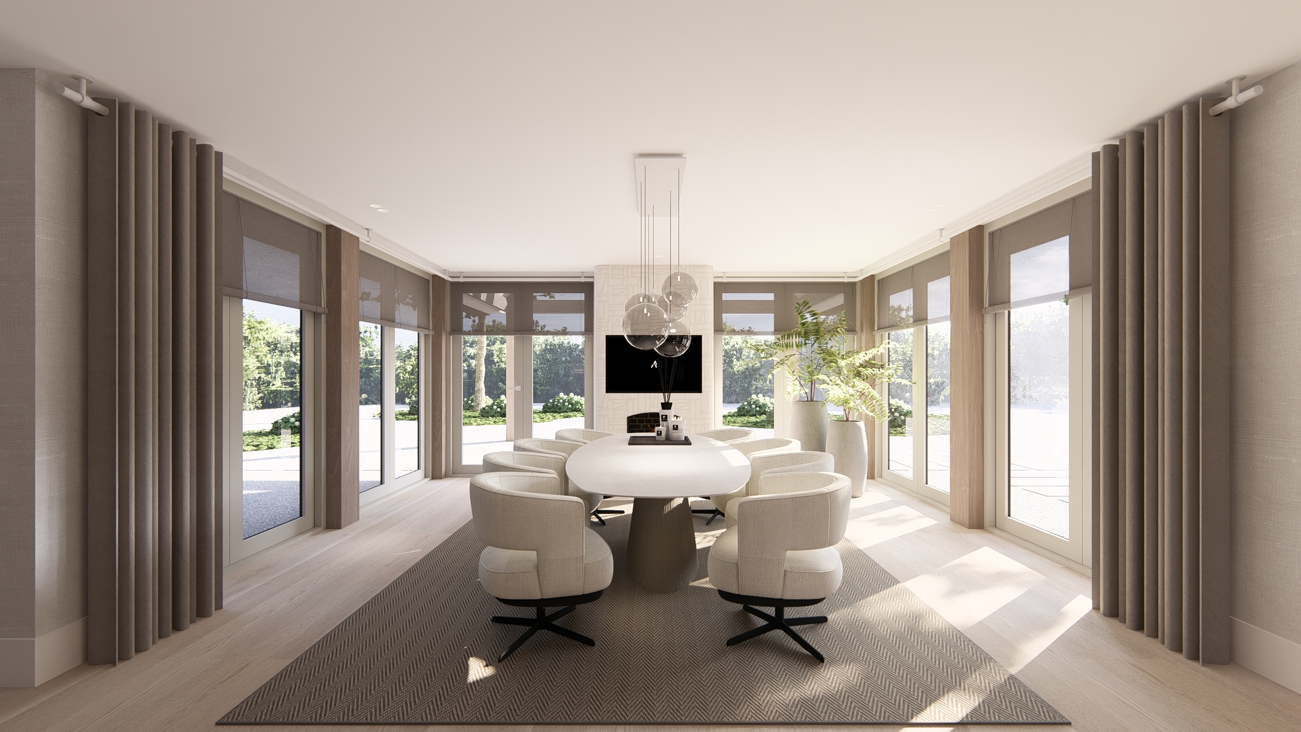 Natural materials such as wood, natural stone, and linen are paired with warm earthy tones, soft whites, and subtle greys, creating a calm and inviting atmosphere. Large windows and open spaces bring the outdoors in, while the design remains both refined and comfortable, perfectly in tune with the Twente landscape and the relaxed rhythm of rural life.
