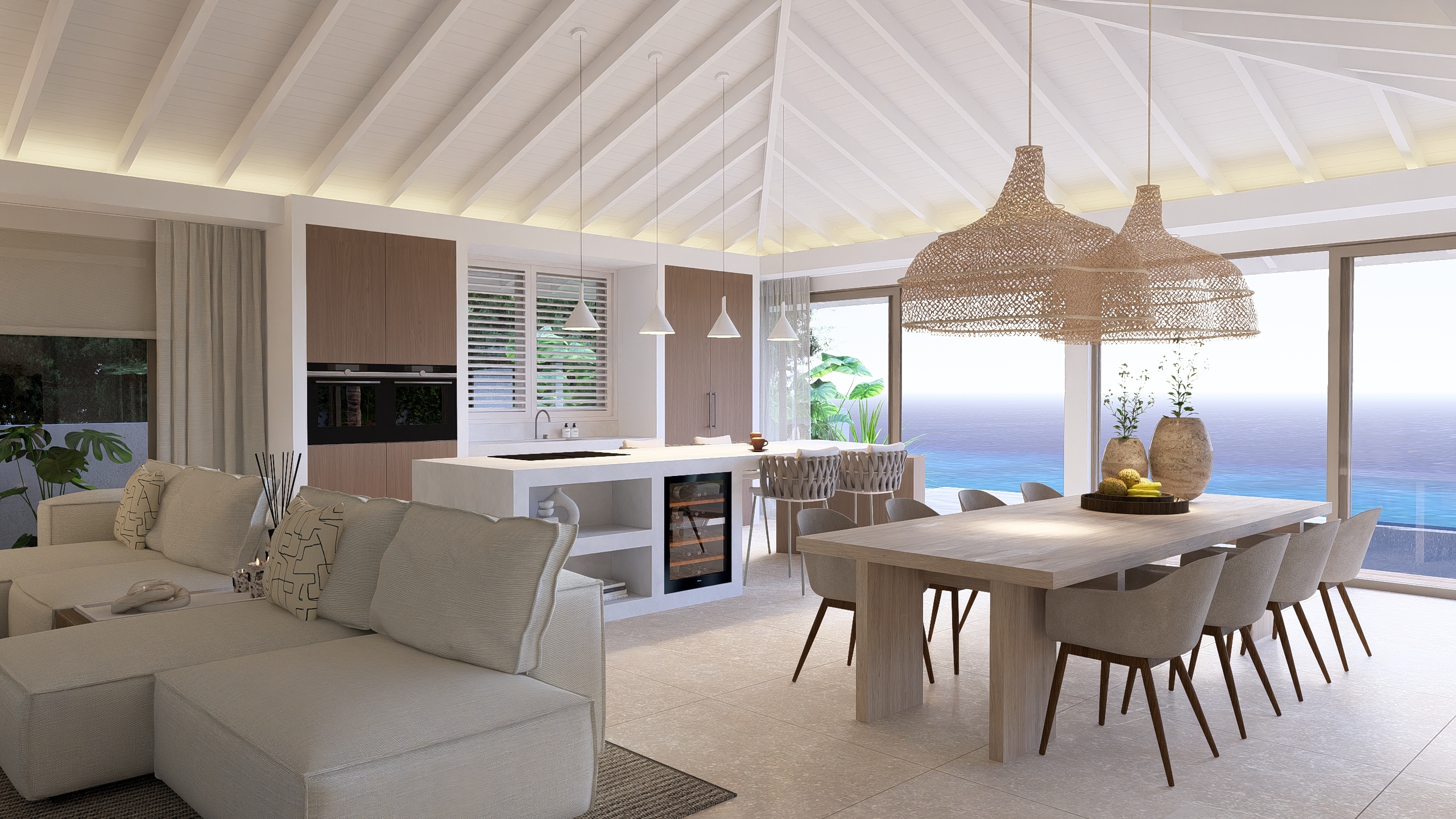 Aan de kust van Curaçao, waar de turquoise zee samensmelt met zacht wit zand, ligt een woning die volledig is ontworpen in harmonie met de rust en schoonheid van het eiland. Het interieur is geïnspireerd op de tijdloze Malibu beach house stijl: licht, luchtig en moeiteloos elegant.