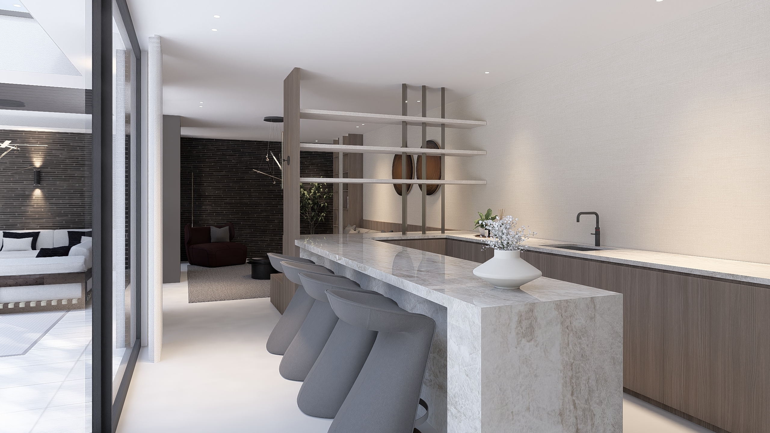 Luxe materialen doorgetrokken in de hele woning