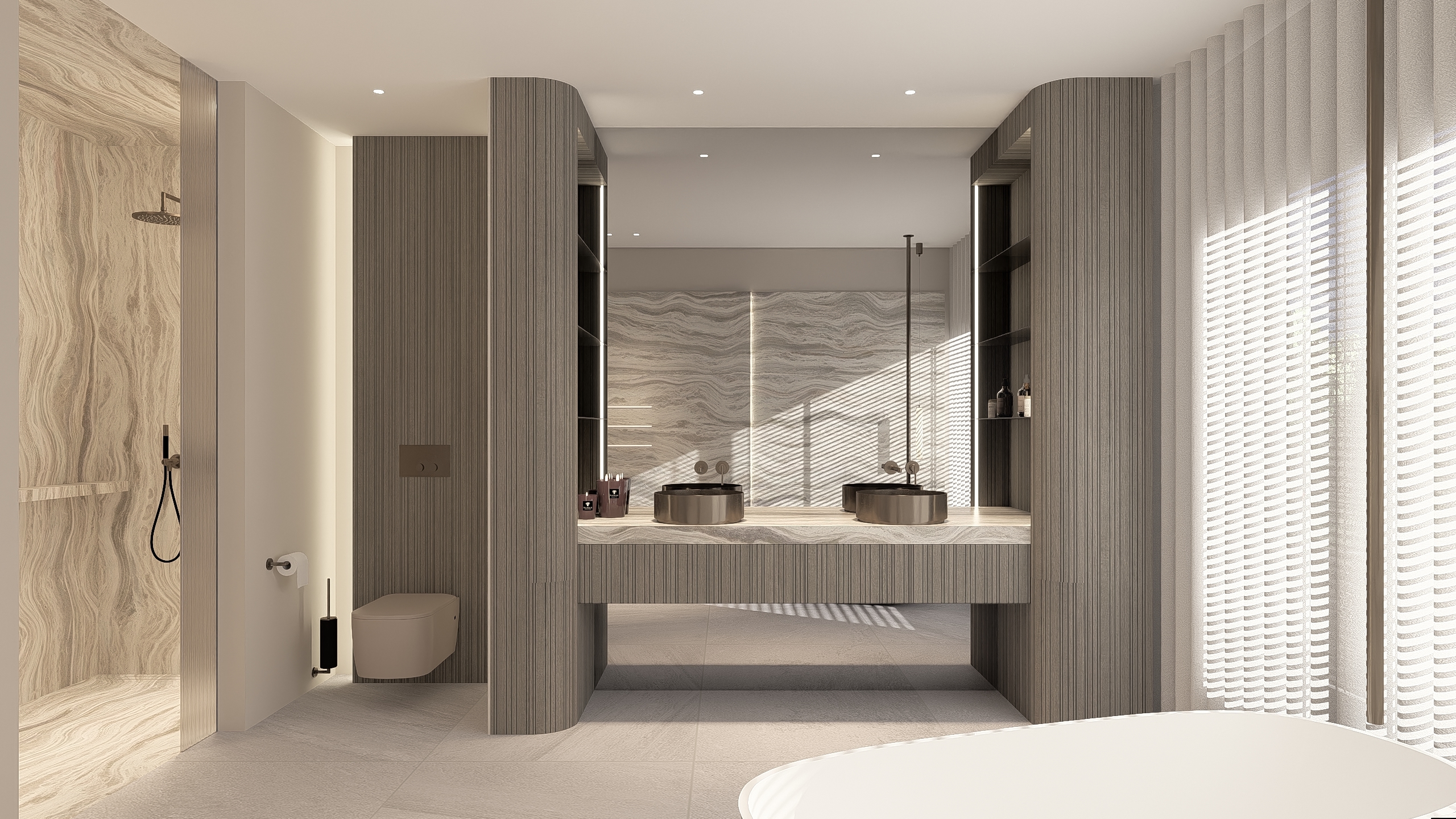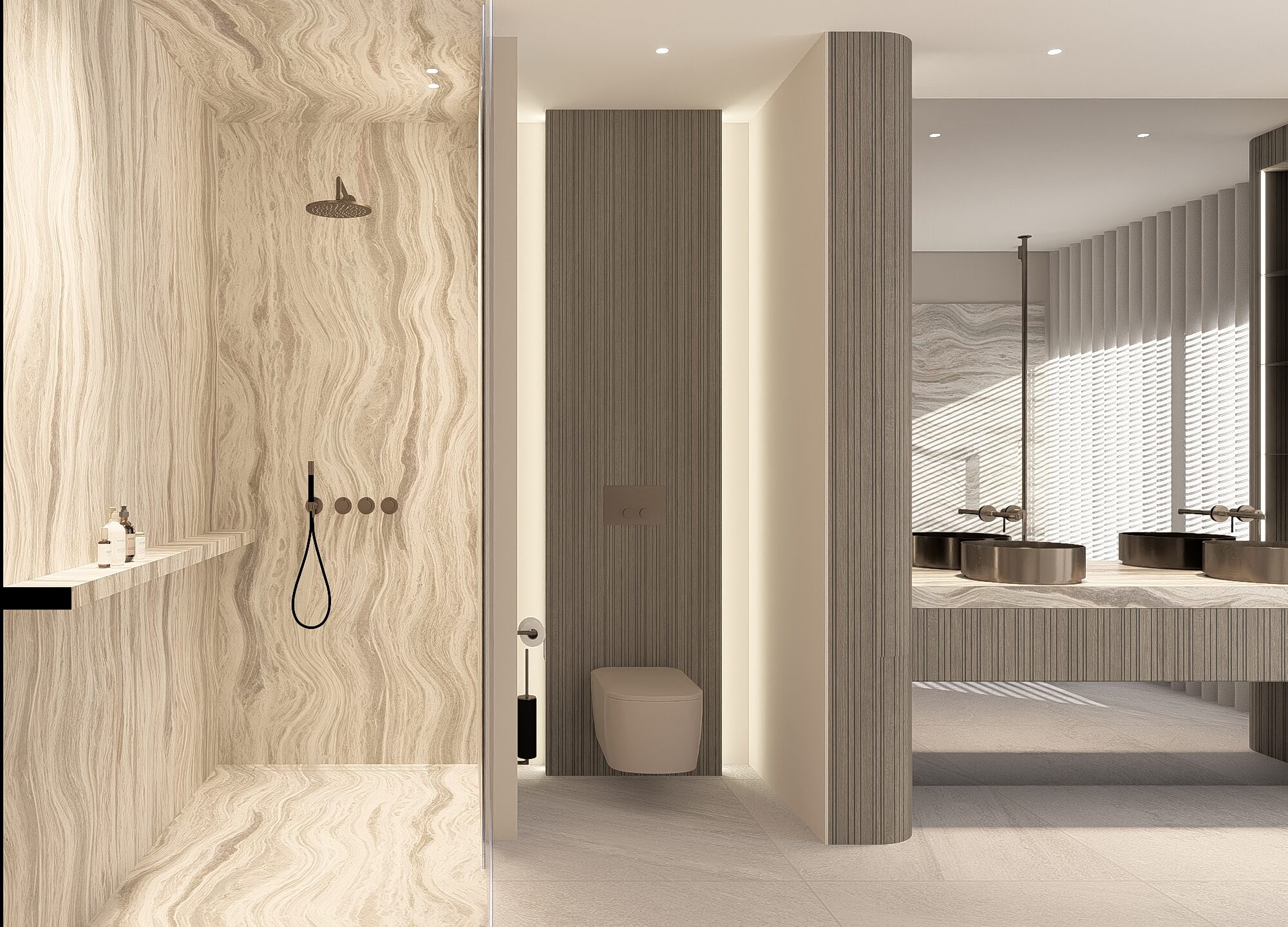 Een project dat zich uitstrekt over drie verdiepingen, volledig ontworpen als één samenhangend maatwerkinterieur. Elk niveau heeft zijn eigen karakter, met een luxe wellness op de derde verdieping als ultiem eindpunt.